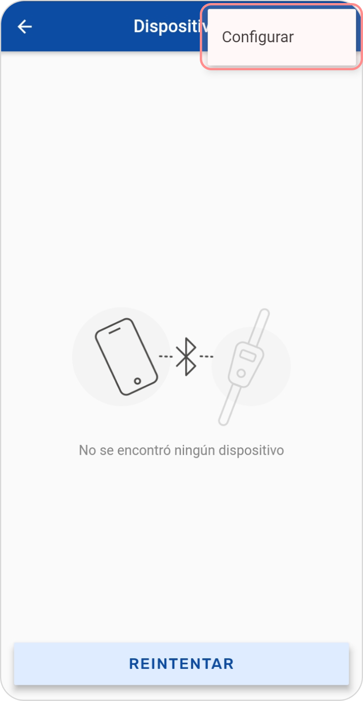 Si no encuentra ningún dispositivo, se mostrará una pantalla que dice "No se encontró ningún lector". Puede que el Bluetooth del lector que querés conectar sea incompatible con el de tu teléfono.