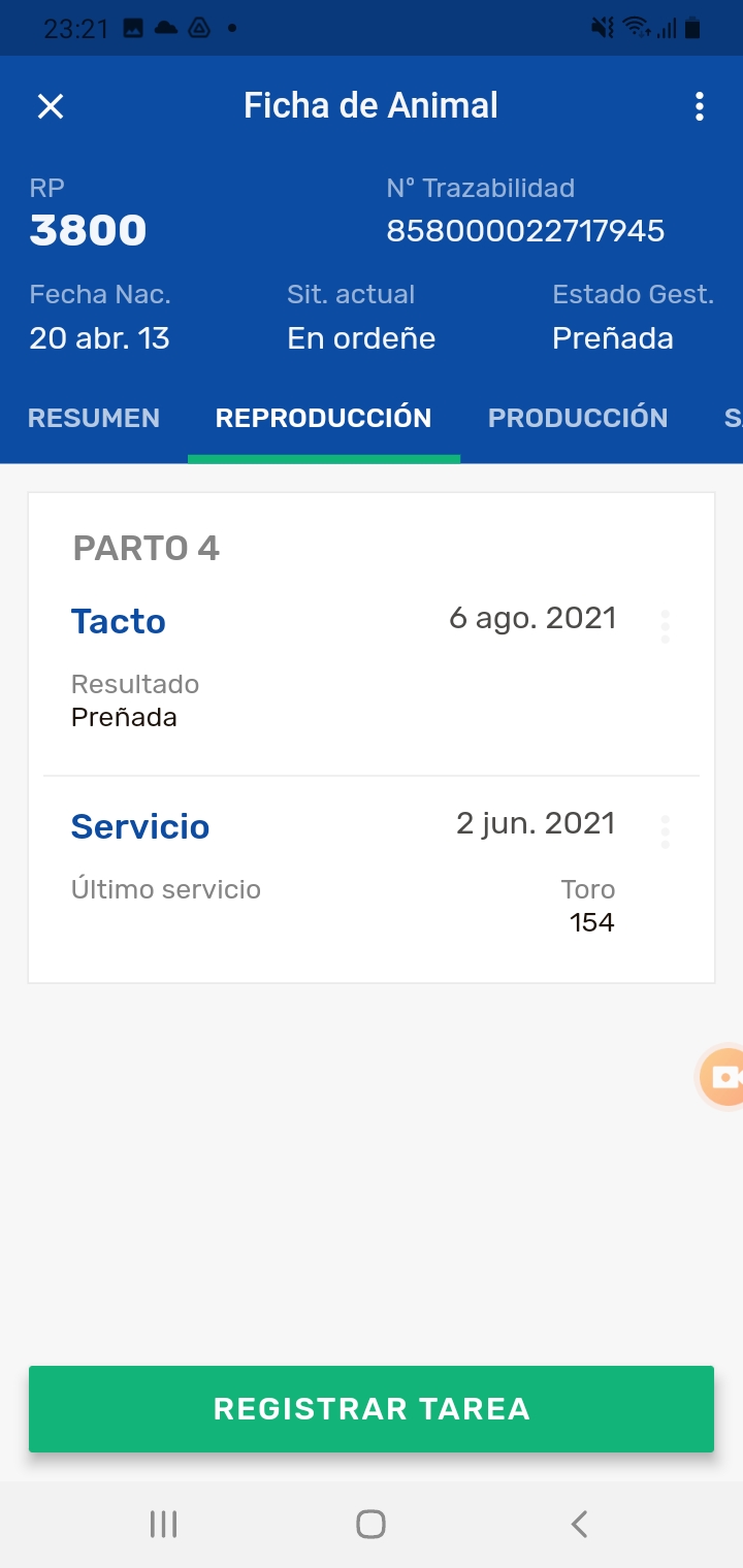Para saber cómo registrar tareas de Reproducción visitiá la sección “Registro de tareas de Reproducción”