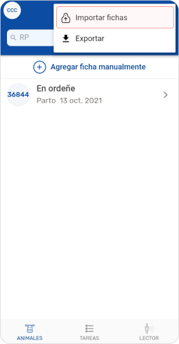 Si el archivo es generado por MU App desde la opción “Exportar”, el historial se mantendrá visible en la ficha de cada animal.