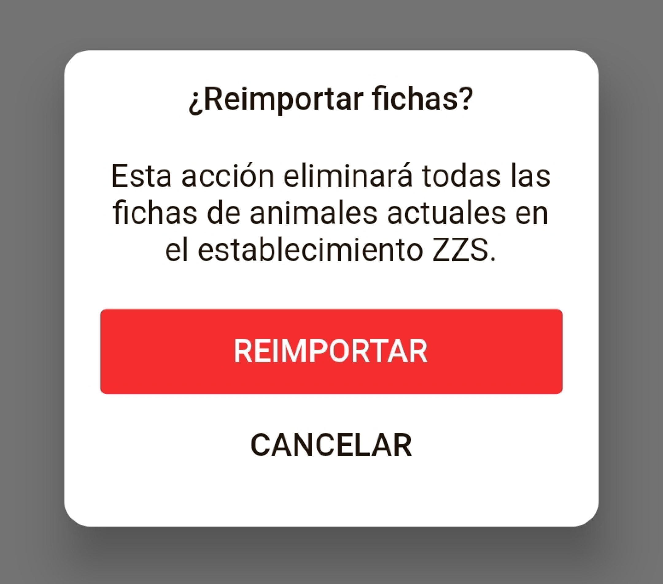 Los datos registrados en la aplicación se perderán al actualizar las fichas, ya que las fichas importadas sobreescribirán la información sobre los animales que registraste en la aplicación.